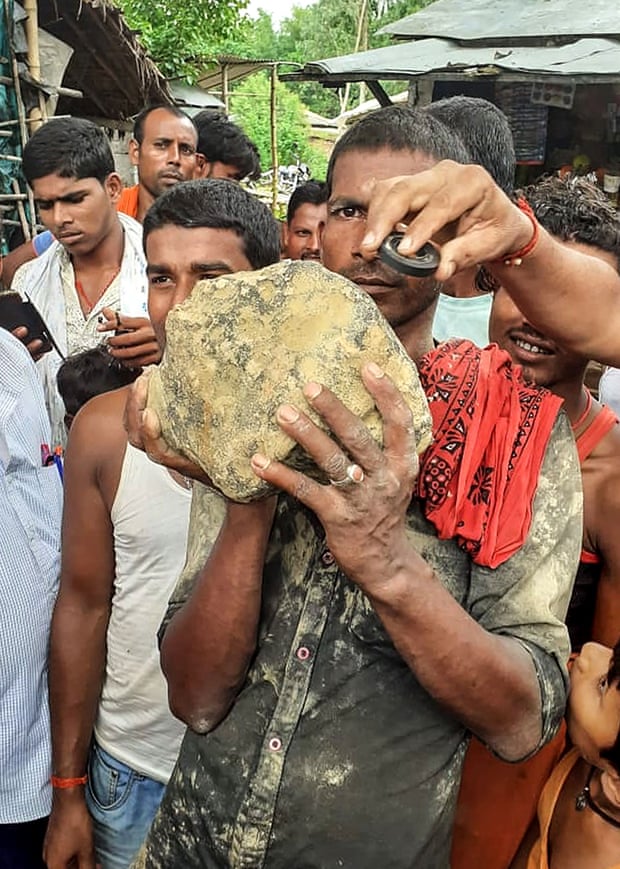 A suspected meteorite has crashed into a paddy field in Bihar, India. Perhaps the most immediately interesting thing about the story is that we know about it. In the picture below note the guy with his mobile phone! Nowhere is out of touch nowadays.