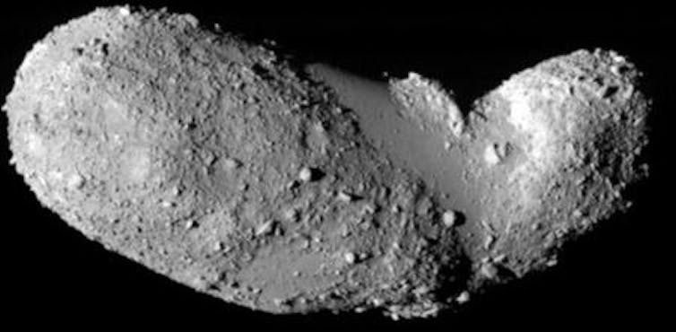 The asteroid Itokawa was the source of grains of dust which contained a surprising layer of water. JAXA