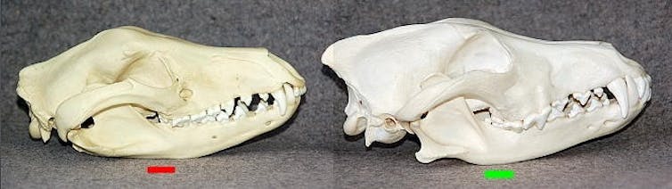 Wolf skulls. The marsupial on the left and the placental on the right. The similarity is unmistakable.